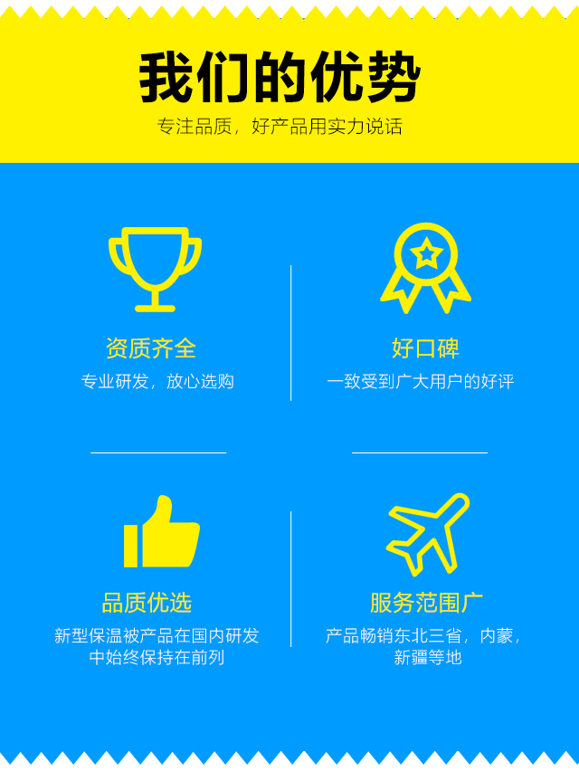 我們本著客戶之上,服務至上的原則,爭創國內保溫被行業的引導者。